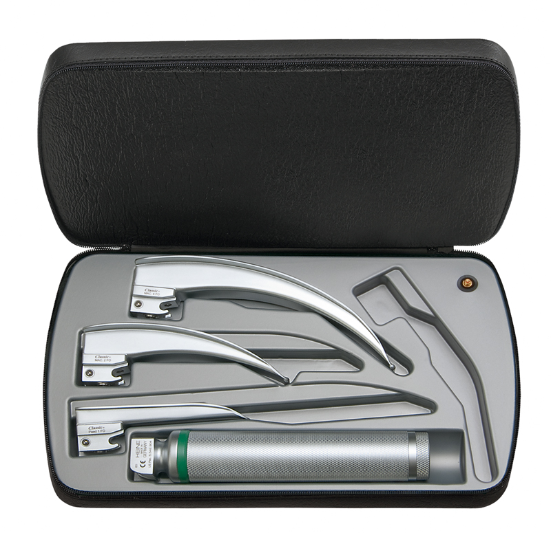 Πλήρες Σετ Λαρυγγοσκοπίων Heine Classic+ Έτοιμα Σετ αποτελούμενα από Λάμες Λαρυγγοσκοπίων Οπτικής Ίνας, Heine Classic+ Macintosh καθώς και Λαβή με λαμπτήρα αλογόνου (XHL), σε ασφαλή θήκη φύλαξης & μεταφοράς. Λάμες Οπτικής Ίνας, Heine Classic+ Macintosh Λάμες Heine τύπου Mac με πρωτοποριακή τεχνολογία Οπτικών Ινών για υψηλής απόδοσης φωτισμό.Δέσμη οπτικών ινών Heine HiLite® με 6500 οπτικές ίνες, διαμέτρου 4.3mm, για μεγάλη φωτεινότητα και ακόμα μεγαλύτερη διάρκεια ζωής. Περισσότερες πληροφορίες για τις Λάμες Λαρυγγοσκοπίων Οπτικής Ίνας, Heine Classic+ Macintosh θα βρείτε εδώ. Λαβή Λαρυγγοσκοπίου Heine με Λαμπτήρα LED Οι Λαβές με Τεχνολογία Φωτισμού LED επιτυγχάνουν την βέλτιστη ένταση του φωτός και την τέλεια απόδοση των χρωμάτων. Ο φωτισμός LED είναι 3 φορές πιο φωτεινός από τους συμβατικούς λαμπτήρες αλογόνου. Η διάρκεια ζωής της λυχνίας LED είναι 50.000 ώρες. Οι Λαβές τεχνολογίας LED μπορούν να αποστειρωθούν και να κλιβανιστούν χωρίς κανένα απολύτως πρόβλημα.Περισσότερες πληροφορίες για τις Λαβές Λαρυγγοσκοπίων Heine LED θα βρείτε εδώ. Κάθε Πλήρες Σετ Λαρυγγοσκοπίου Heine περιλαμβάνει (ανάλογα την επιλογή): Λάμα Παιδιατρική, PAED No1 Λάμα τύπου Mac 2 Λάμα τύπου Mac 3Λαβή με λαμπτήρα LED Οπτικής ΊναςΘήκη Φύλαξης και Μεταφοράς Πρακτικά υπάρχει η δυνατότητα της δημιουργίας οποιουδήποτε εξατομικευμένου σετ λαρυγγοσκοπίων, με επιλογή των λαμών που επιθυμείτε (Mac, Miller, Paed κλπ), της λαβής που σας εξυπηρετεί και καθορίζει τον φωτισμό (XHL ή LED) όπως και το αν θα χρησιμοποιείτε κοινές αλκαλικές μπαταρίες ή επαναφορτιζόμενες με αυτόματο σύστημα φόρτισης.Επικοινωνήστε μαζί μας για εξατομικευμένη επιλογή & προσφορά μας.