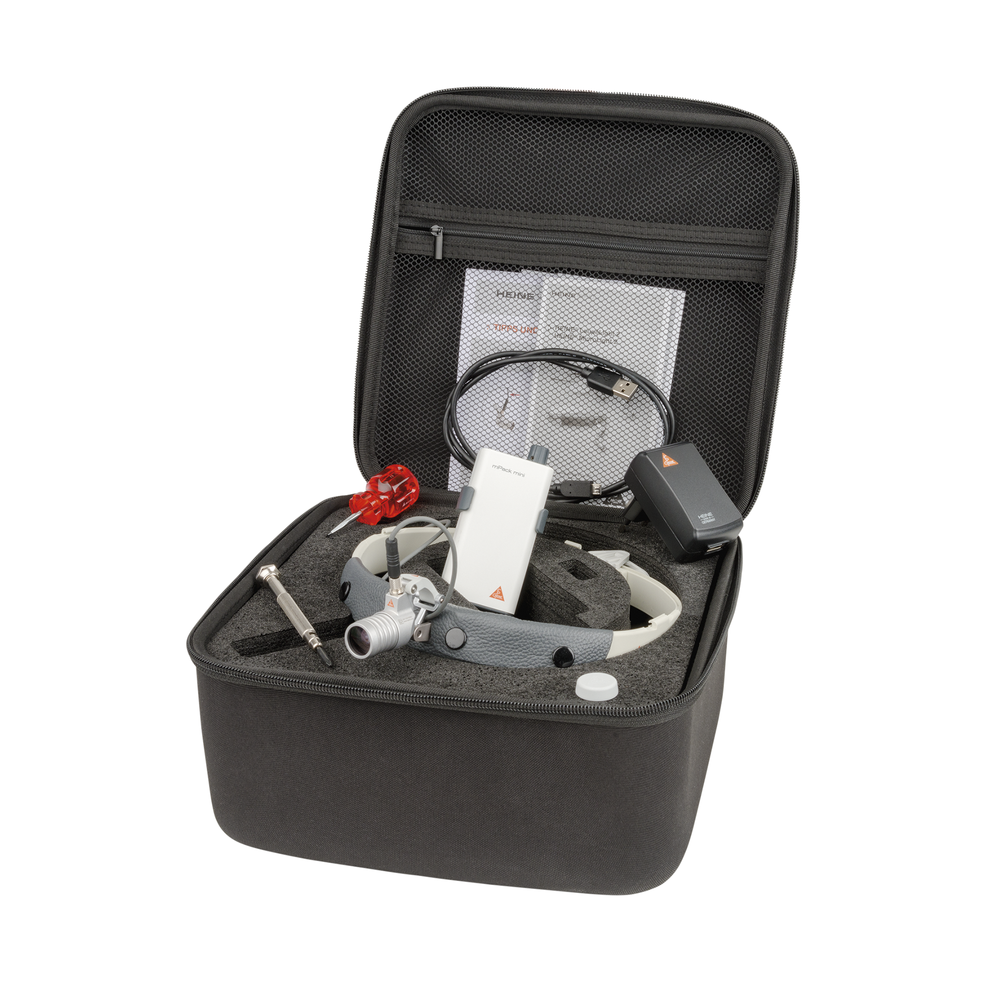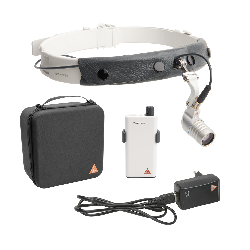 Σετ Μετωπιαίου Φωτισμού Υψηλής Απόδοσης Heine LED MicroLight2 σε Κεφαλοδέτη Heine Lightweight