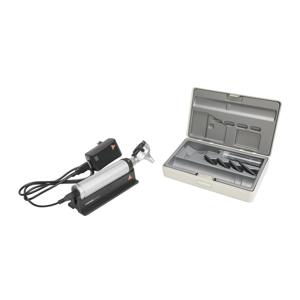Σετ Ωτοσκοπίου ΗΕΙΝΕ ΒΕΤΑ®200 LED με Φορτιστή USB Σετ Ωτοσκοπίου ΗΕΙΝΕ ΒΕΤΑ®200LED τροφοδοτούμενο μέσω της επαναφορτιζόμενης λαβής HEINE BETA4 USB (συνοδεύεται από διακριβωμένο (medical approved) φορτιστή και καλώδιο φόρτισης), σε σκληρή θήκη φύλαξης & μεταφοράς & χωνάκια. Δείτε εικόνα του ακουστικού πόρου με υψηλή οξύτητα, τέλεια απόδοση & φωτεινότητα χρωμάτων.Με μεταλλικό εξ’ ολοκλήρου σώμα και κρυστάλλινο φακό (οπτικό παράθυρο) παρατήρησης πολλαπλών επιστρώσεων, ανθεκτικό στις γρατσουνιές, το Ωτοσκόπιο ΗΕΙΝΕ ΒΕΤΑ®400 με φωτισμό LED, εγγυάται δια βίου λειτουργία χωρίς καμιά απαίτηση συντήρησης.Με μεγέθυνση 3x. Λεπτομερής Ωτοσκόπηση των ανατομικών δομών και εύκολη αναγνώριση ξένων σωμάτων.Φωτεινή Δέσμη Οπτικών Ινών. Εξασφαλίζει ομογενή, υψηλή φωτεινότητα και ανεμπόδιστη παρατήρηση του ακουστικού πόρου και του τυμπάνου.Συνεχής & Αδιαβάθμιστος έλεγχος/ρύθμιση (dimming) της φωτεινότητας μεταξύ 3% – 100%. H βέλτιστη ένταση του φωτισμού μπορεί να ρυθμιστεί μεμονωμένα σε κάθε περίπτωση.Το μόνιμα προσαρτημένο οπτικό σύστημα (φακός/παράθυρο παρατήρησης), μπορεί να ανοίξει/περιστραφεί έτσι ώστε να επιτρέψει την παρατήρηση χωρίς μεγέθυνση, την χρήση εργαλείων (κιουρέτας) και τον εύκολο καθαρισμό της κεφαλής του ωτοσκοπίου.Διαθέτει ενσωματωμένη θύρα πνευματοσκόπησης. Το προιόν, για πλήρη λειτουργικότητα και απόδοση φωτισμού συνοδεύεται από την λαβή μπαταριών BETA4 USB με επαναφορτιζόμενη μπαταρία, φορτιστή με καλώδιο & ένα σετ (4τμχ) επαναχρησιμοποιούμενα χωνάκια ωτοσκόπησης και 5 αναλώσιμα χωνάκια 2.5 & 4.0mm, σκληρή θήκη προστασίας και βάση τοποθέτησης της λαβής. Πέντε (5) χρόνια εγγύηση. Η HEINE δεν κάνει συμβιβασμούς στην κατασκευή ιατρικών οργάνων υψηλής ποιότητας. Καθετοποιημένη παραγωγή σημαίνει πλήρης έλεγχος σε όλες τις πτυχές της ποιότητας των οργάνων. Οι λυχνίες LED κατασκευάζονται καθετοποιημένα από την Heine στις εγκαταστάσεις της στην Γερμανία. Διαθέτουν ειδικά χαρακτηριστικά (π.χ χρωματική απόδοση – CRI) που τις καθιστούν τέλειο συμπλήρωμα της αναμενόμενης ποιότητας Heine, σε αντίθεση με άλλους κατασκευαστές που χρησιμοποιούν υλικά αμφίβολης ποιότητας. Ενημερωθείτε για τις χρησιμοποιούμενες τεχνολογίες από τα επισυναπτόμενα έγγραφα.